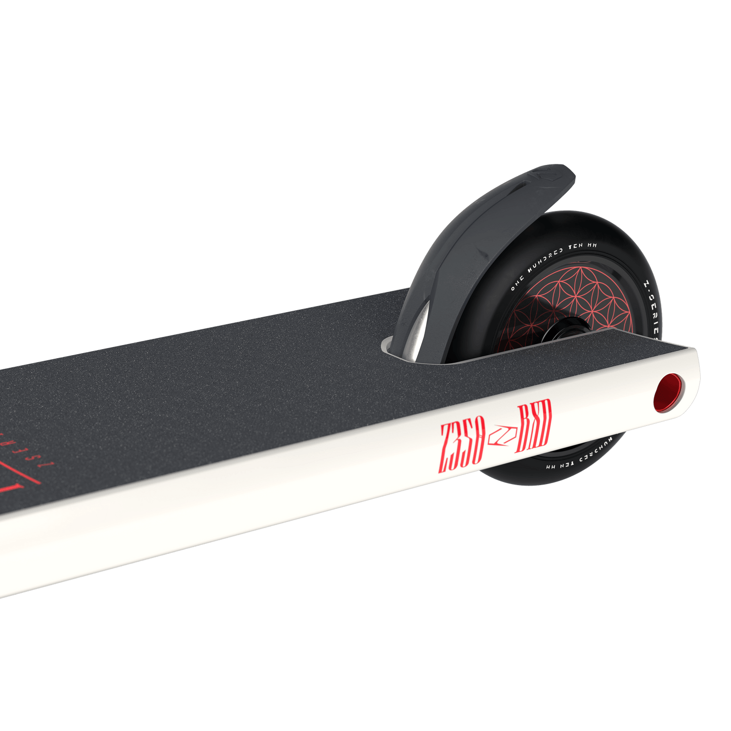 The 2022 Z350 Boxed complete scooter is masterfully crafted to allow for both styles of riding. The Z350 Boxed comes equipped with a 5″ x 20.5″ Entropy Deck that is made of premium 6061-T6 Aluminum with a unique base cutout to reduce weight and add a ton of style. The 26″ tall Chromoly Steel bars are perfect for helping you maintain your balance while locking into grinds. Rollin on 110mm x 24mm hollowcore wheels with our signature 86a grade PU and ABEC 9 bearings attached a an HIC Aluminum fork. See full dimensions and specs below.