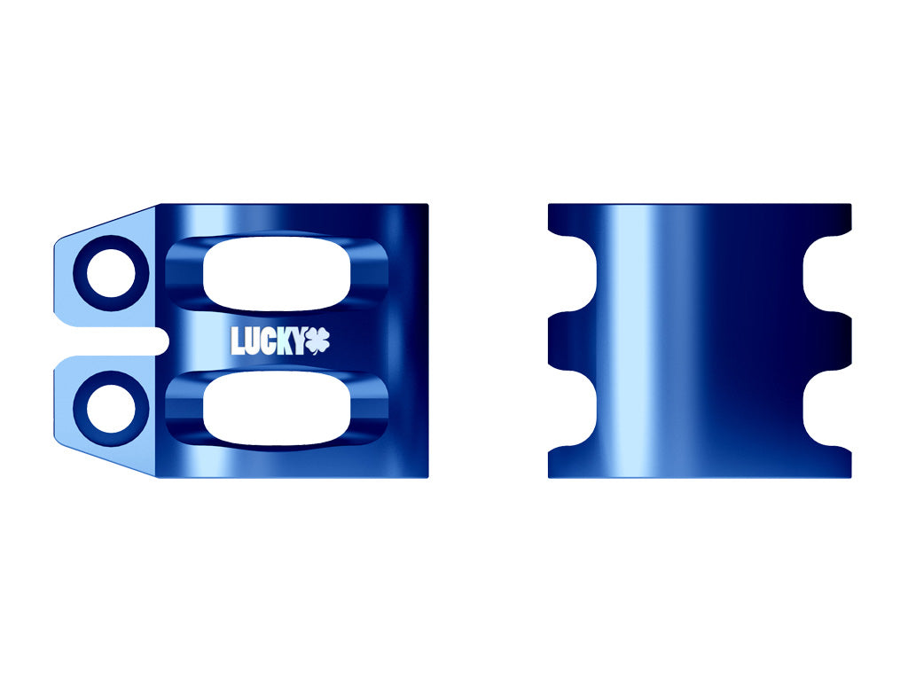 The Lucky 2018 DUBL™ Clamp is a lightweight and creatively designed pro scooter clamp. We start with the best 6000 series aircraft aluminum and CNC machine it to final specs. We drilled the bolt holes extra deep to avoid stripping and use top of the line hardened bolts.