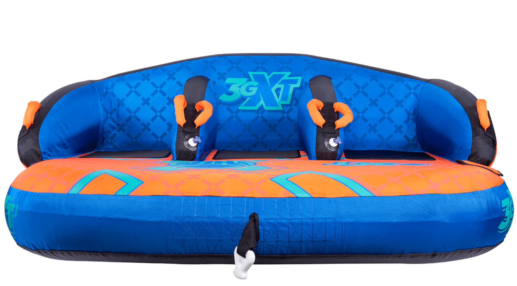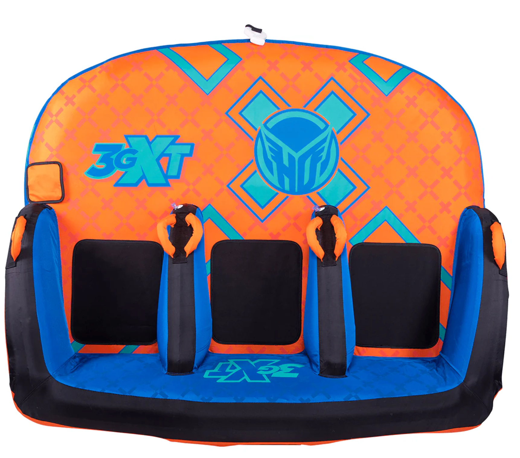 Introducing the 3GXT, the ultimate towable tube designed for maximum toughness and excitement. With its eXtra Tough construction and ergonomic lounge-style seats, this tube offers unmatched durability and comfort. Backed by an industry-first 3-year limited warranty, it ensures a worry-free ride on the water. Gather two friends and experience endless fun with the 3GXT.