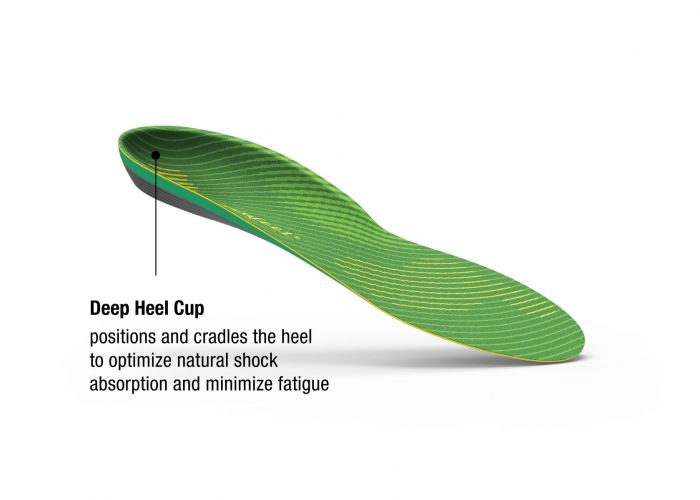 Positions and cradles the heel to optimize natural shock absorption and minimize fatigue