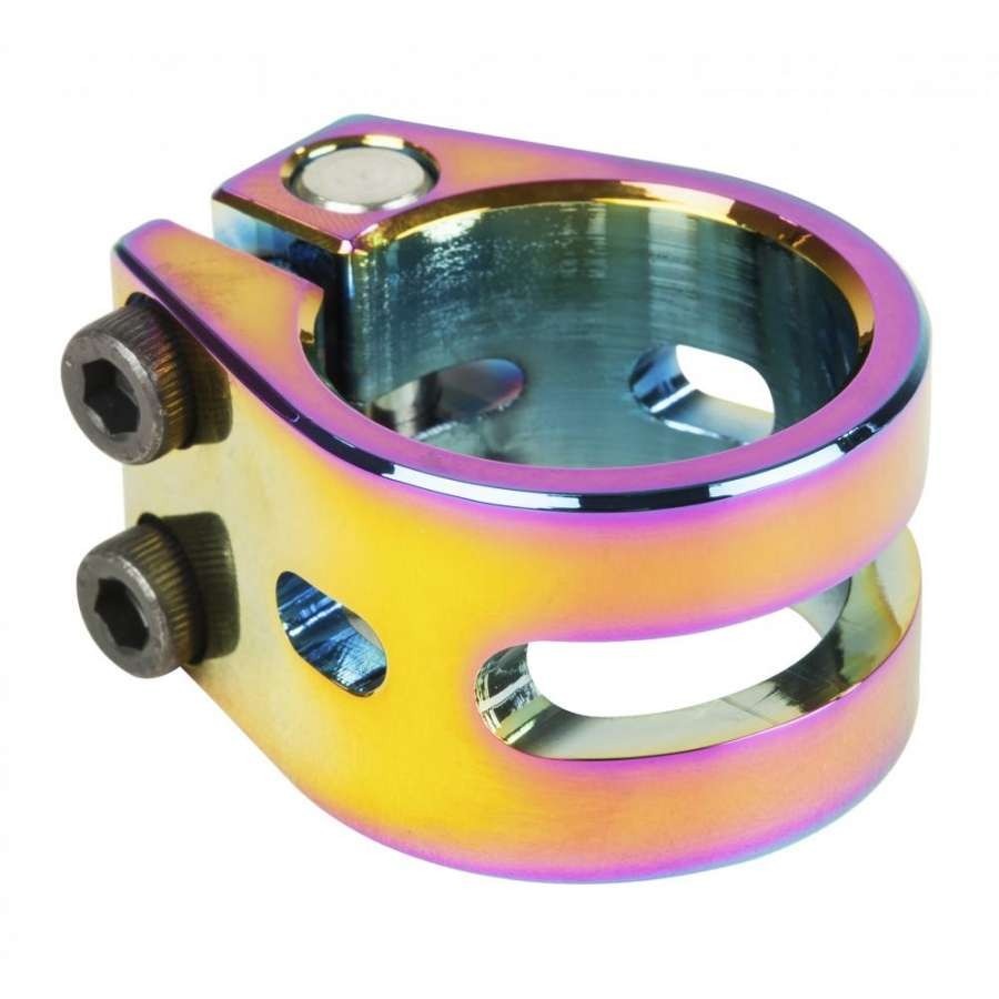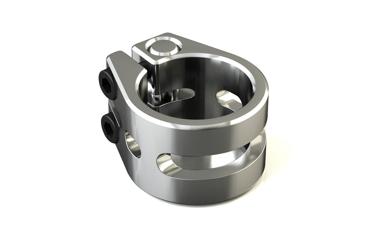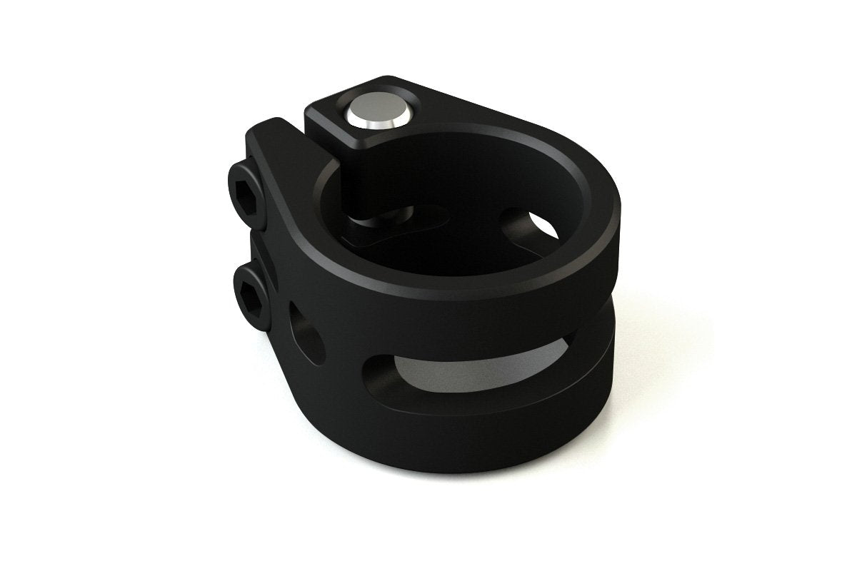 The Nutron 2-bolt collar clamp might be small, but has incredible grip force. The design incorporates a threaded steel insert which means you can tighten the clamp till your heart’s content without the fear of stripping it. The clamp body has material removed strategically to save weight, but keeps the high clamp force. The total weight is just 70g.